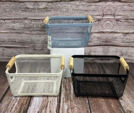 CANASTO ORGANIZADOR DE METAL 25X17X10 CM MANGO DE MADERA – (LBN-51068)