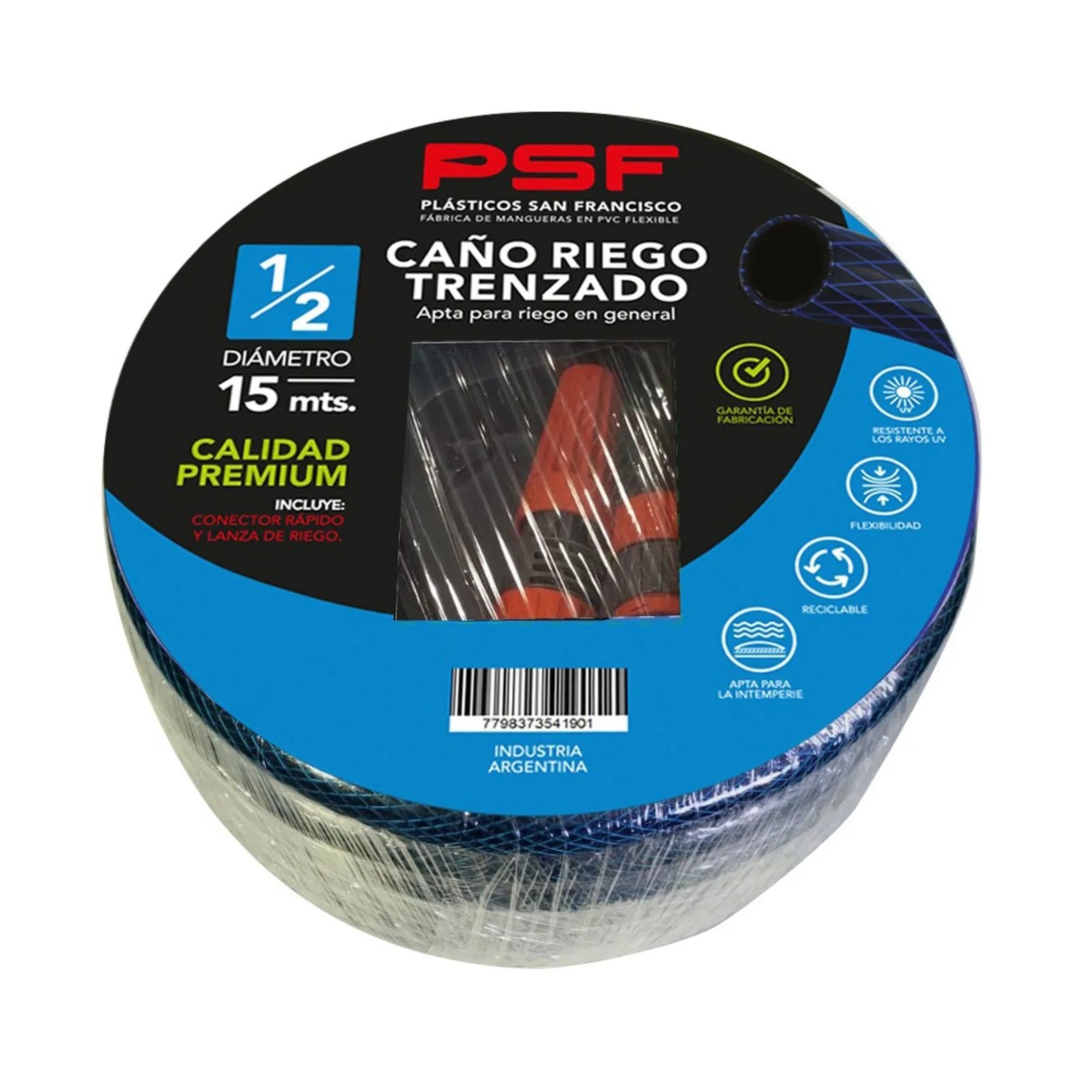 KIT Manguera Riego TRENZADO 10 BAR AZUL con Conector y Lanza De 1/2 X15 Mts. – (KPM-28000)