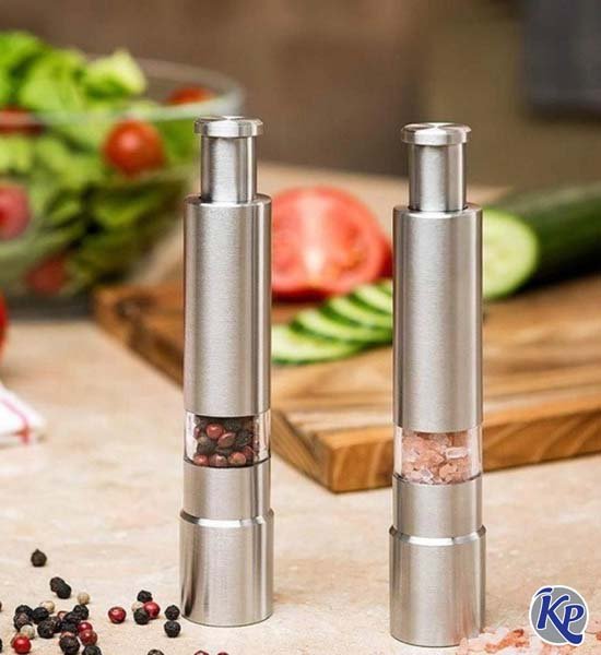 PIMIENTERO DE MANO A PISTON CON BOTON DE ACERO INOX 14 X 2.8 CM – (RYB-64976)