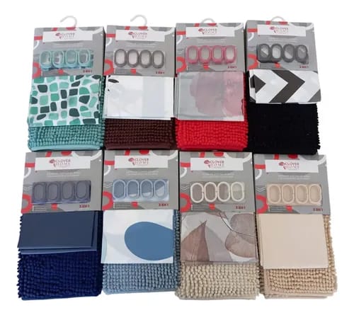 SET X 3 ALFOMBRA SHAGY + CORTINA DE BAÑO + GANCHOS – (LBN-24125)
