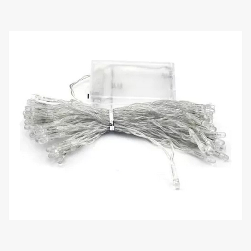 TIRA LUZ LED FRIA (cable transparente 50 luces a pilas) – (KYK-410448)